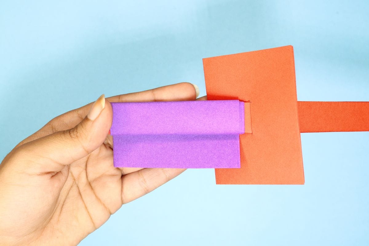 Insert the short paper to the hole of the long paper.
